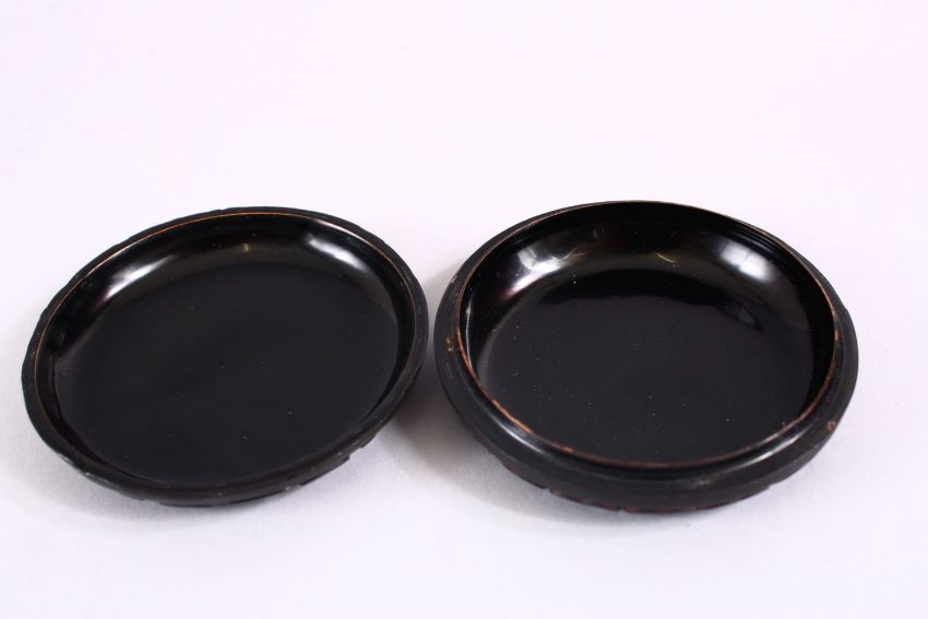 A 19TH CENTURY CHINESE BLACK CINNABAR LACQUER BOX & COVER, 7CM