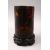 A GOOD 19TH CENTURY CHINESE LACQUER BRUSH POT & STAND, The pot decorated with gold lacquer to depict scenes of native landscape views, with its hardwood carved fitted stand, the pot alone 15cm high x 11cm diameter.