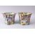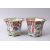 TWO 19TH CENTURY CHINESE CANTON FAMILLE ROSE PORCELAIN JARDINIERE, both decorated with figures in landscapes and balcony settings, with butterflies and foliage, 14cm high x 18cm dia.& 14cm x 17cm.