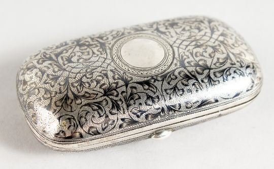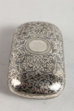 A RUSSIAN SILVER AND NIELLO CHEROOT CASE, decorated with a foliate design.