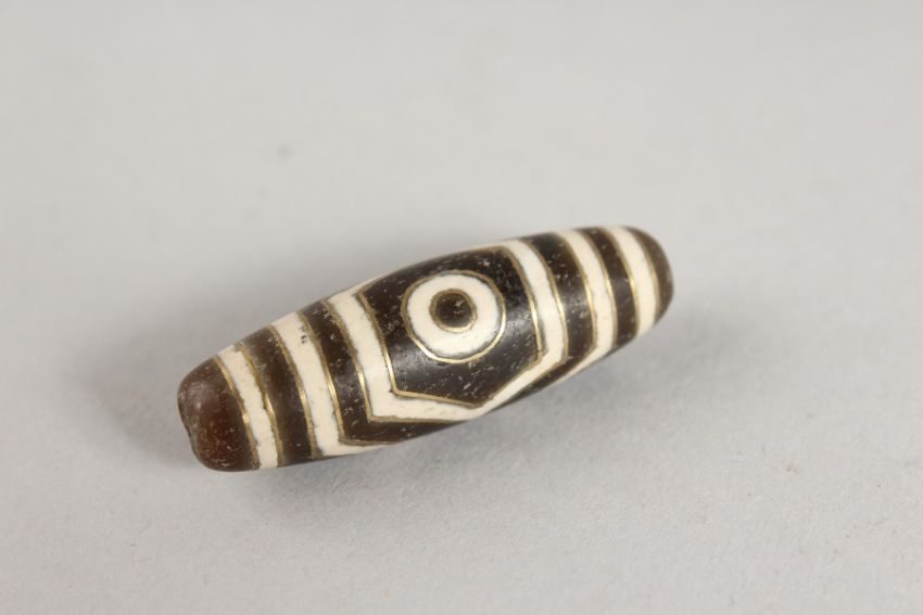 A GOLD INLAID HARD STONE ZHI BEAD.