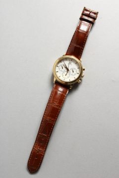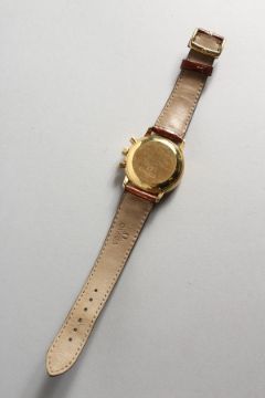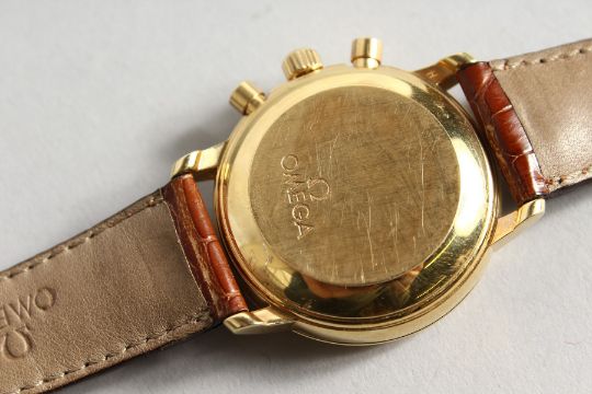 A GOOD GENTLEMAN'S OMEGA 18CT GOLD THREE DIAL WRISTWATCH, with leather strap, No. 48329718.