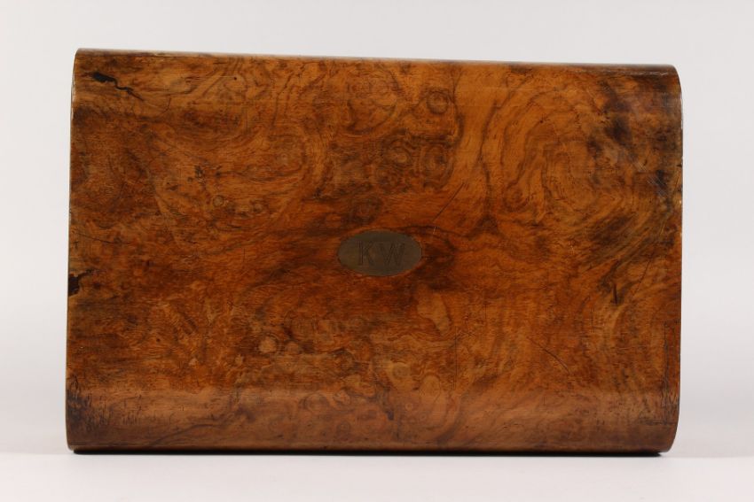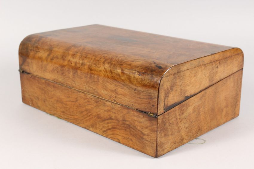 A VICTORIAN WALNUT DOMED TOP WRITING SLOPE with fitted interior.