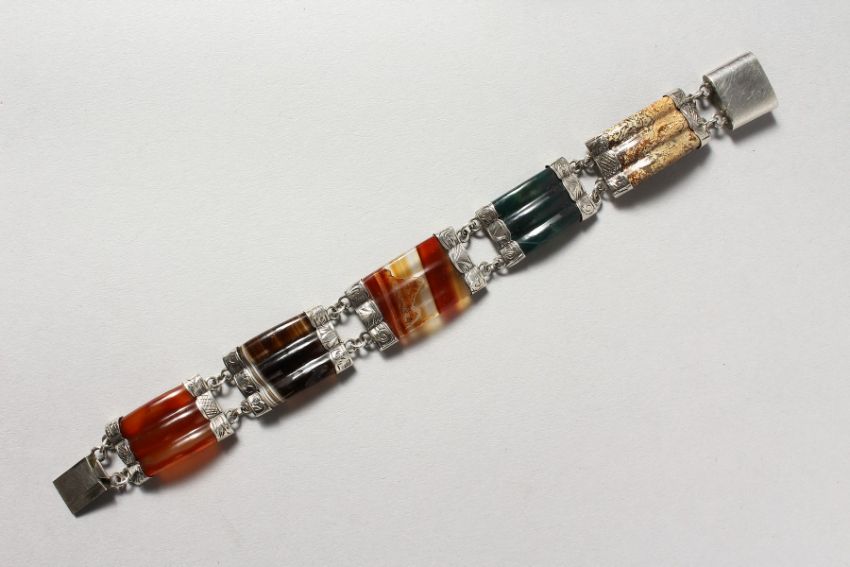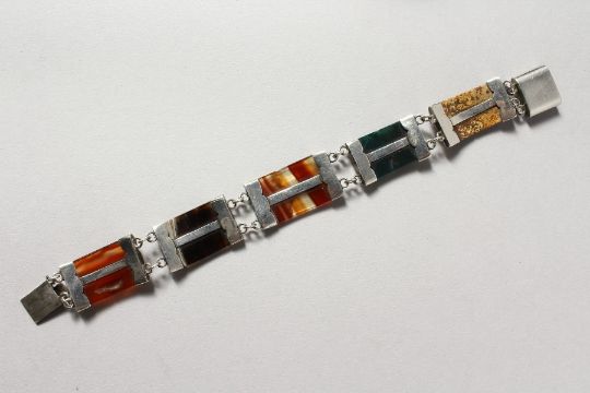 A SCOTTISH SILVER AND AGATE BRACELET.