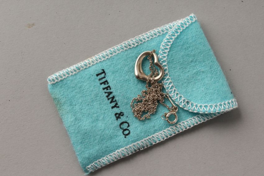 A TIFFANY HEART AND CHAIN in a Tiffany pouch.