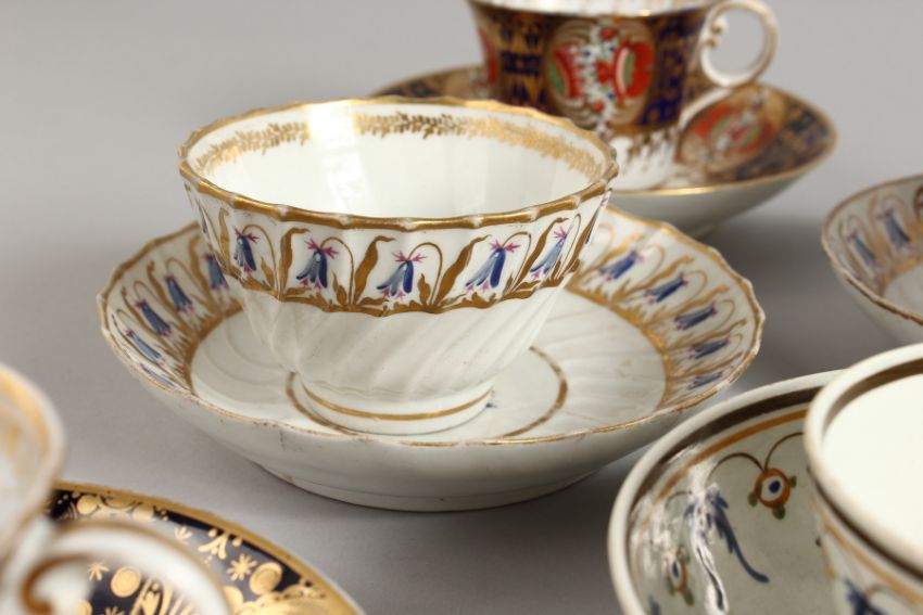 A CHAMBERLAIN WORCESTER FOUR IMARI CUPS AND SAUCERS, three Flight tea bowls and saucer, late 18th Century.