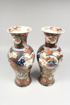 A VERY GOOD PAIR OF SAMSON OF PARIS IMARI PATTERN VASES, rich colours, in gilt, reds and blues.