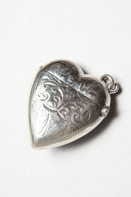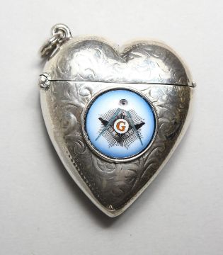 A SILVER HEART SHAPE VESTA, with later Masonic style enamel plaque.