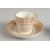 A CHELSEA DERBY FLORAL TEA BOWL AND SAUCER, Dennis Collection, a Derby cup and saucer with tear drop gilding under a pink ground and a Derby moulded teacup and saucer with high handle.