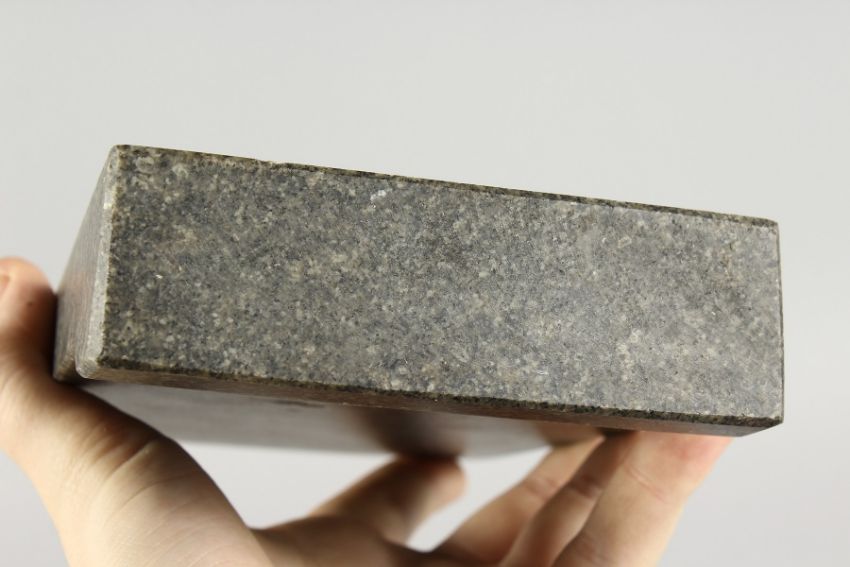 A RUSSIAN MARBLE WEIGHT, engraved with a head of a man.