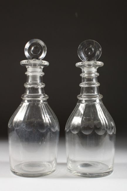 A GOOD PAIR OF GEORGIAN DECANTERS AND STOPPERS.