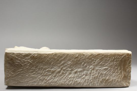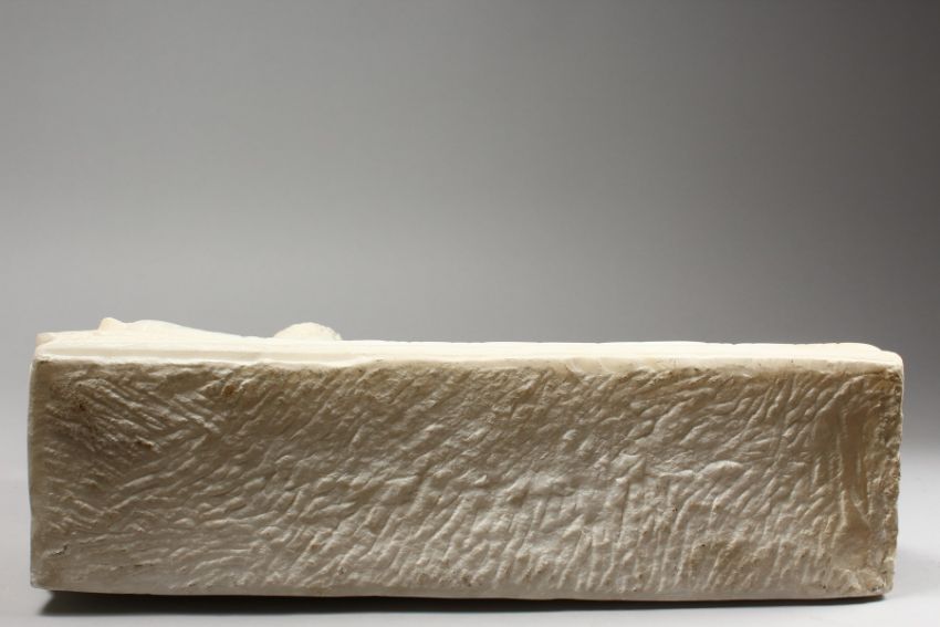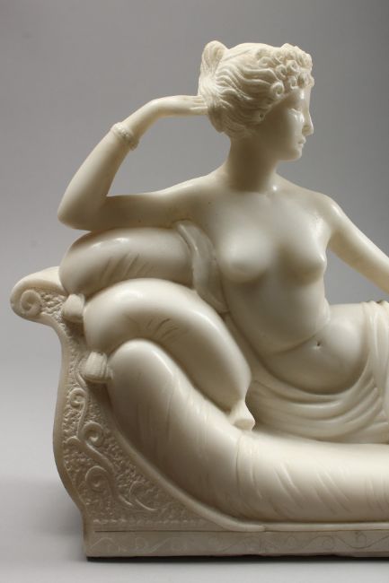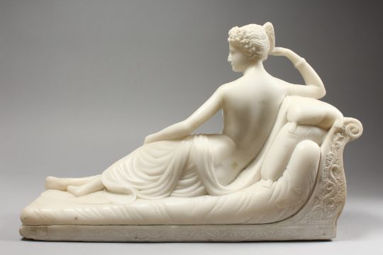 A GOOD 19TH CENTURY ITALIAN WHITE MARBLE SCULPTURE, carved as a reclining female semi-nude, on a chaise longue.