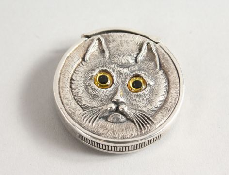 A SILVER CAT'S HEAD VESTA.