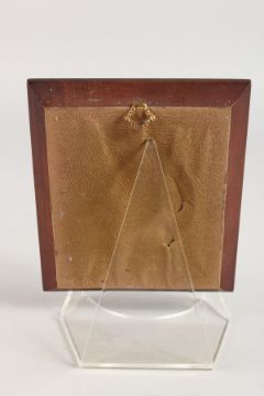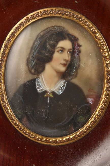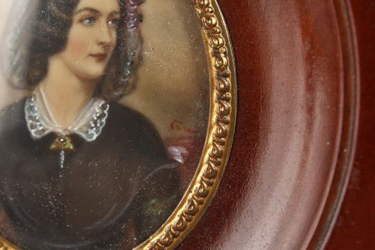 AN OVAL PORTRAIT MINIATURE OF A YOUNG LADY in a wooden frame.