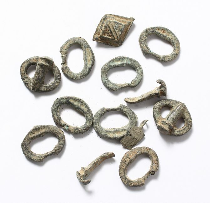 A BAG OF SMALL ROMAN BUCKLES.