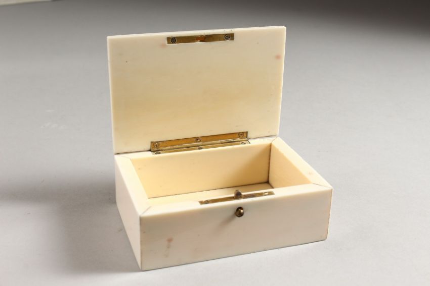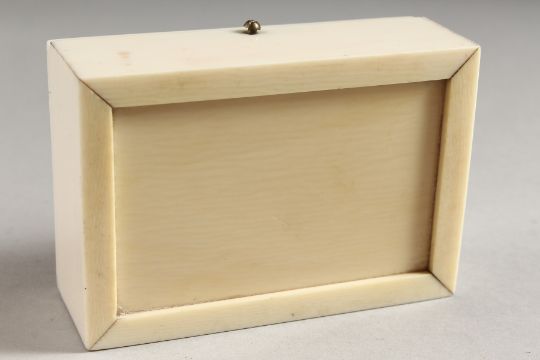 A GOOD SMALL RECTANGULAR IVORY BOX with hinged lid.