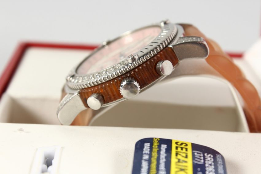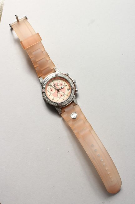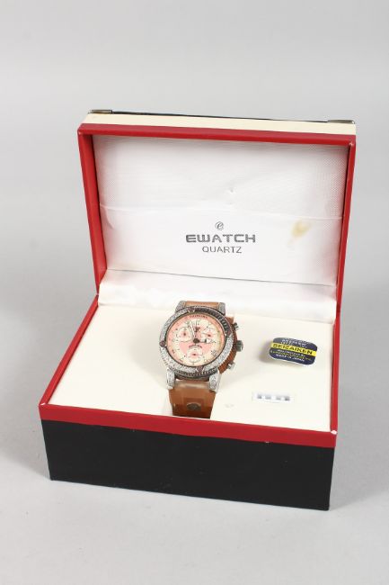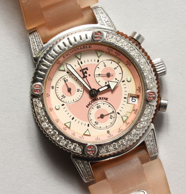 A FACOMARINE WATCH with three dials and diamond bezel, in an E Watch box, No. 0077620