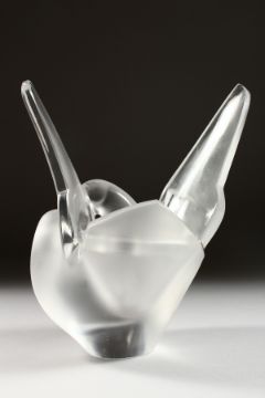 A MODERN LALIQUE FROSTED GLASS VASE modelled as two doves, with flower holder.