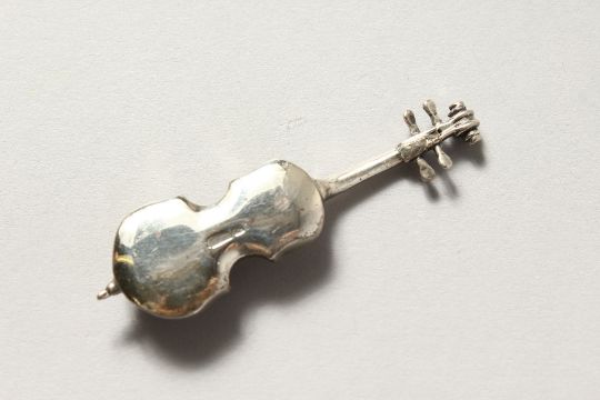 A MINIATURE SILVER VIOLIN.