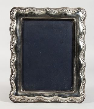 A SILVER PHOTOGRAPH FRAME with shaped edge.