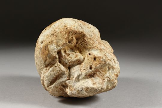 AN EARLY, POSSIBLY 16TH CENTURY, CARVED STONE HEAD.