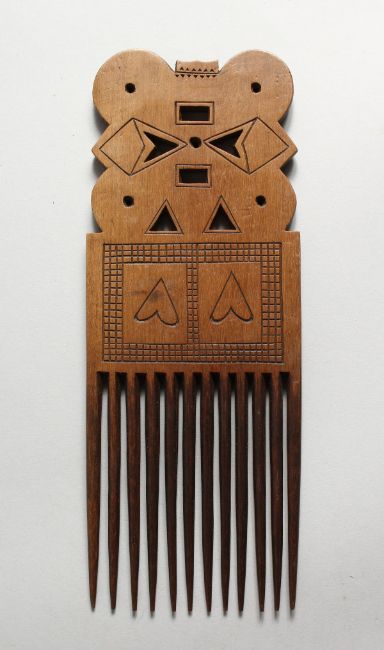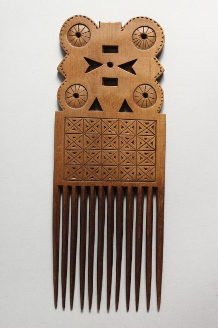 A TRIBAL CARVED WOOD COMB.