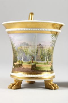 A 19TH CENTURY BERLIN CUP AND SAUCER, the cup painted with a parkland scene.