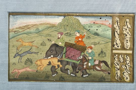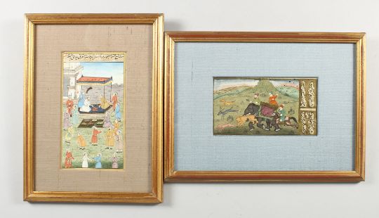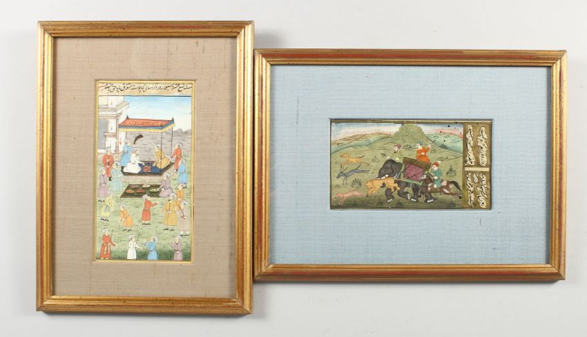 TWO FRAMED ISLAMIC PICTURES, Deer Hunt and Homage.