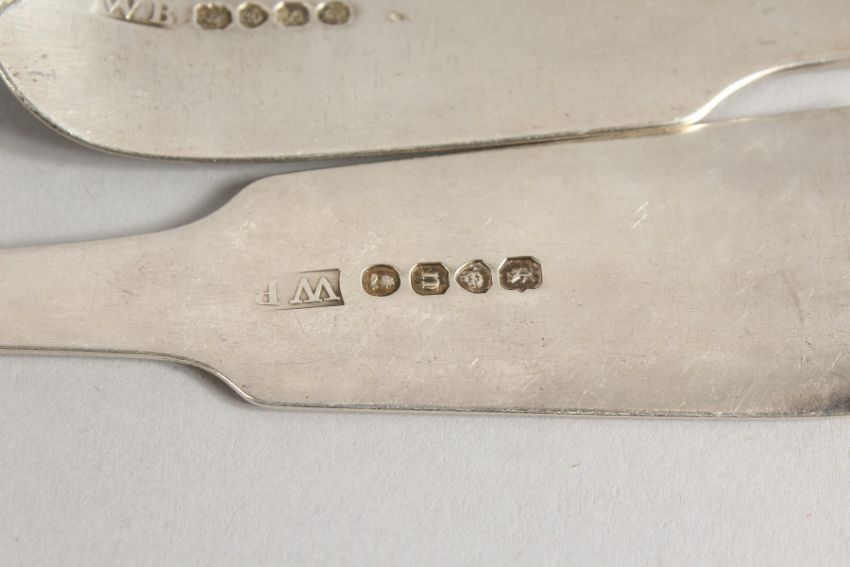 TWO SILVER BASTING SPOONS, London 1828 and 1833. Maker WB.