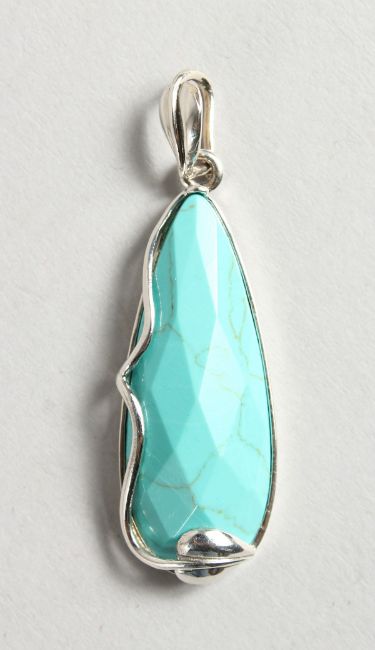 A SILVER AND TURQUOISE PENDANT.
