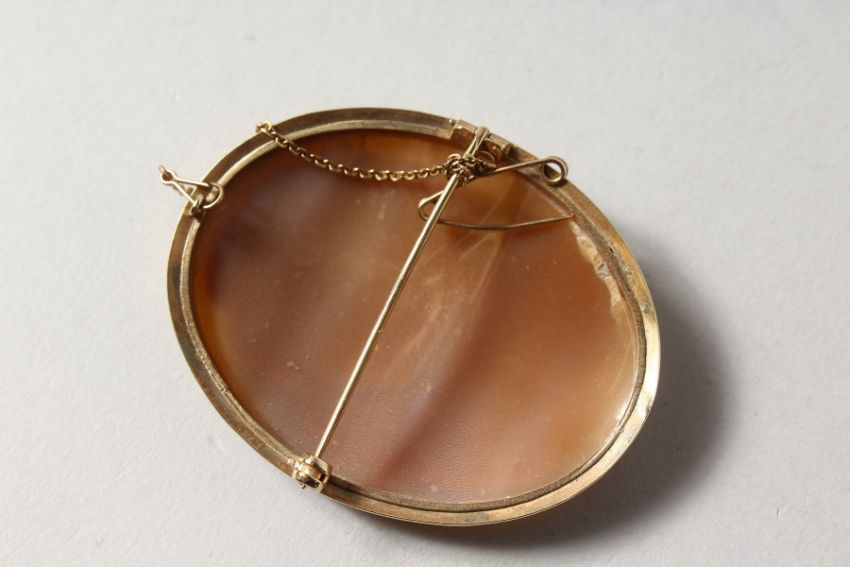A GOOD GOLD OVAL CAMEO BROOCH.