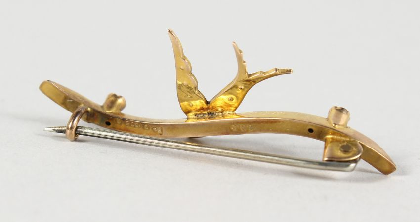 AN EDWARDIAN GOLD, PEARL AND RUBY SET BROOCH.