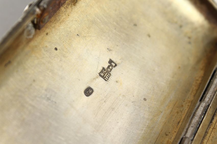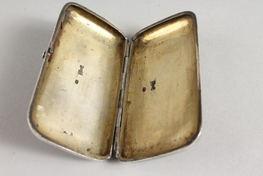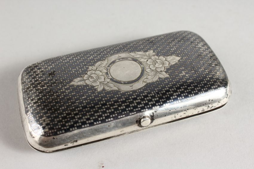 A RUSSIAN SILVER AND NIELLO CHEROOT CASE decorated with a game of "Blind Man's Bluff".