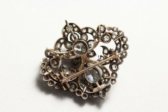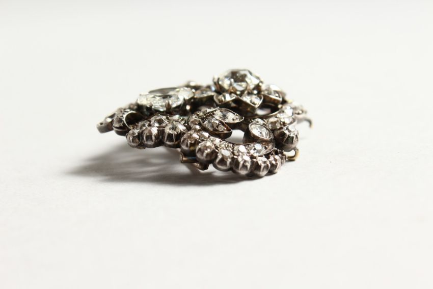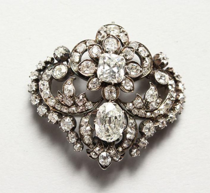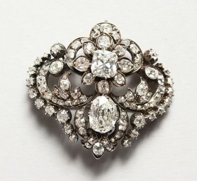 A SUPERB OLD CUT DIAMOND BROOCH of CIRCA 1880, with two large diamonds surrounded by approx. ninety smaller diamonds.