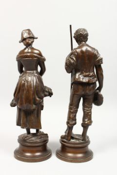 LANGELUS & L'ANGELUS. A VERY GOOD PAIR OF BRONZE FIGURES on circular bases.