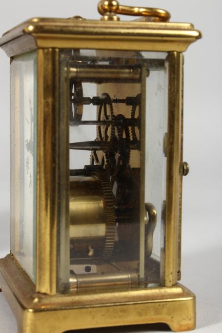 A GOOD FRENCH BRASS CARRIAGE CLOCK.