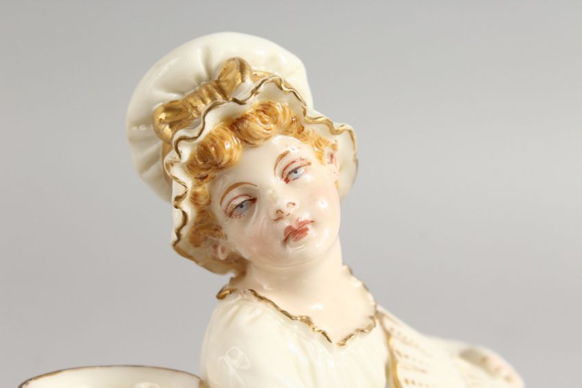 A ROYAL WORCESTER FIGURE OF A GIRL WITH A FAN.