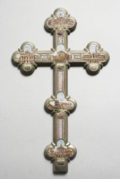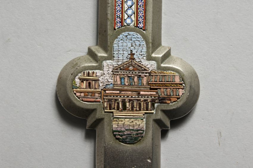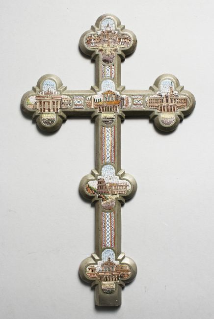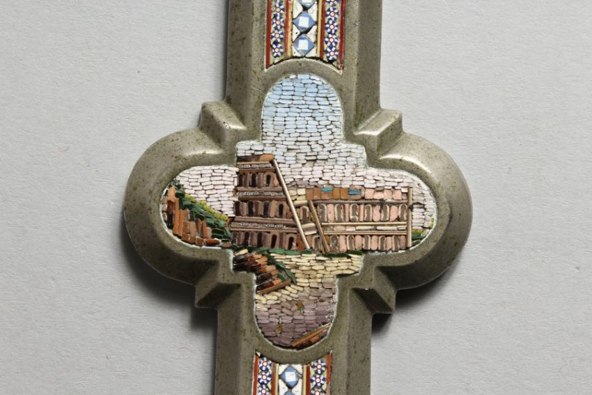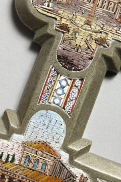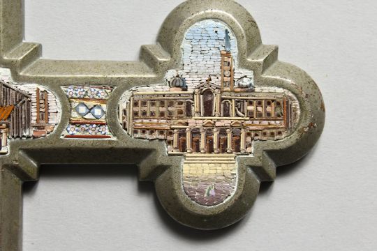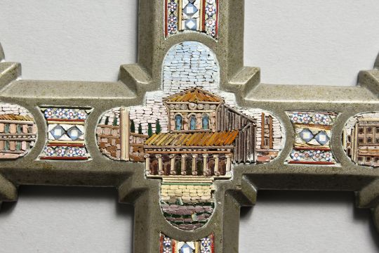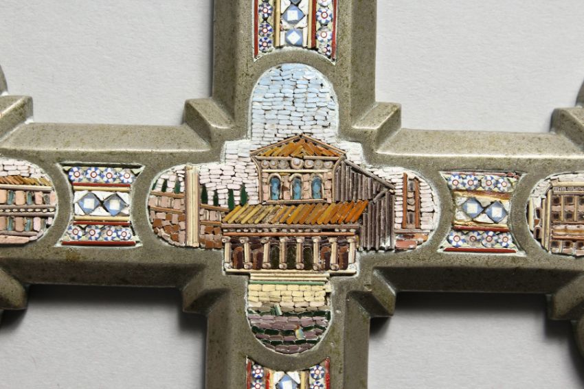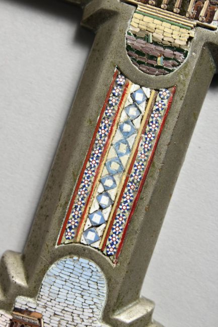 A 19TH CENTURY ITALIAN MICRO MOSAIC CROSS.