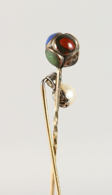 A DIAMOND AND PEARL STICK PIN and an ENAMEL STICK PIN.