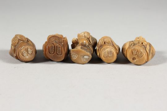 FIVE CHINESE BONE NETSUKES.
