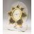 A SUPERB STRUTT CLOCK, on a shaped crystal frame, the oval dial with fine engraving, surrounded by seven various shapes with turquoise and diamond chips.