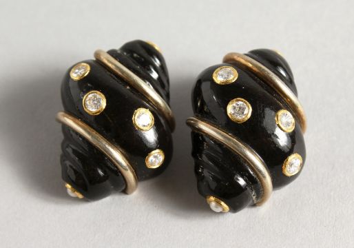 A PAIR OF 18CT GOLD SHELL SHAPED EARRINGS.