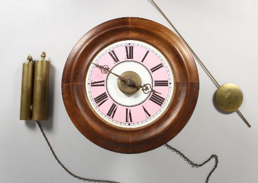 A HANGING WALL CLOCK.