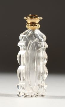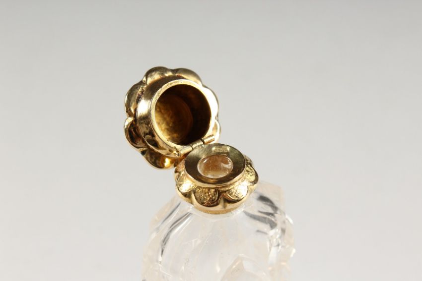 A CUT GLASS SCENT BOTTLE with an 18ct gold top.