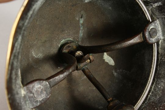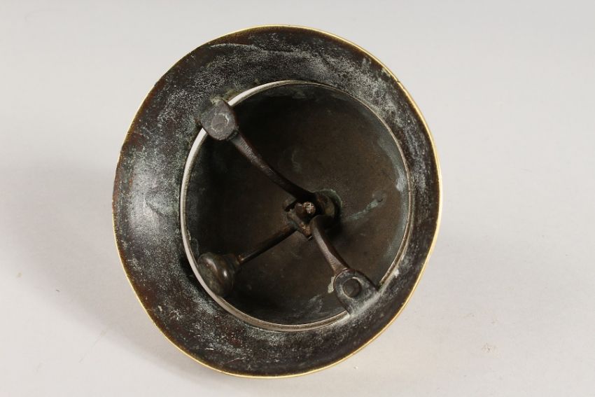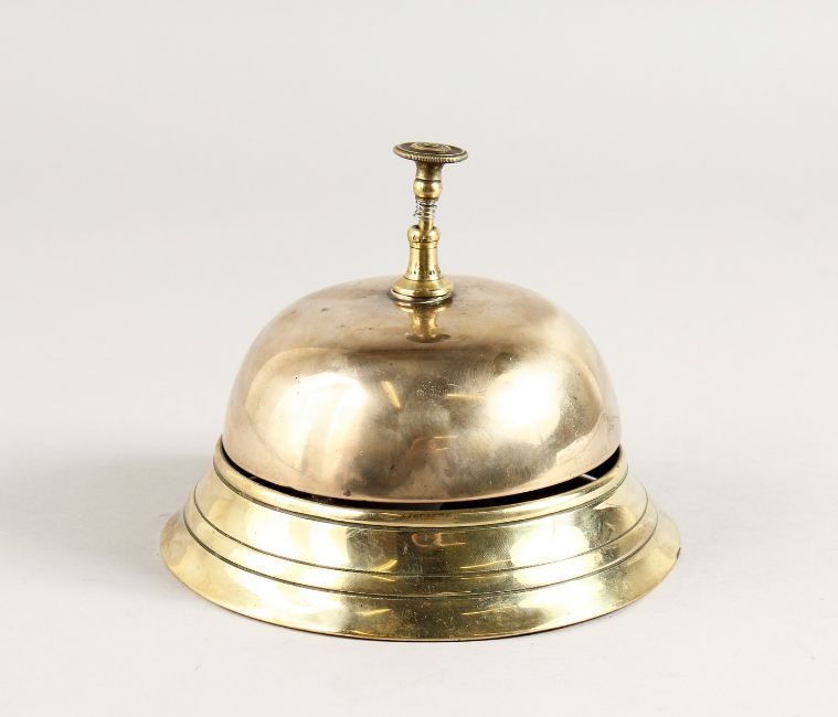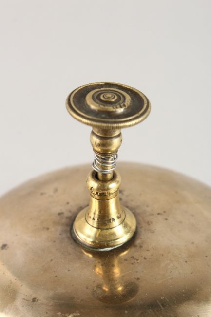 A CIRCULAR BRASS DESK BELL.