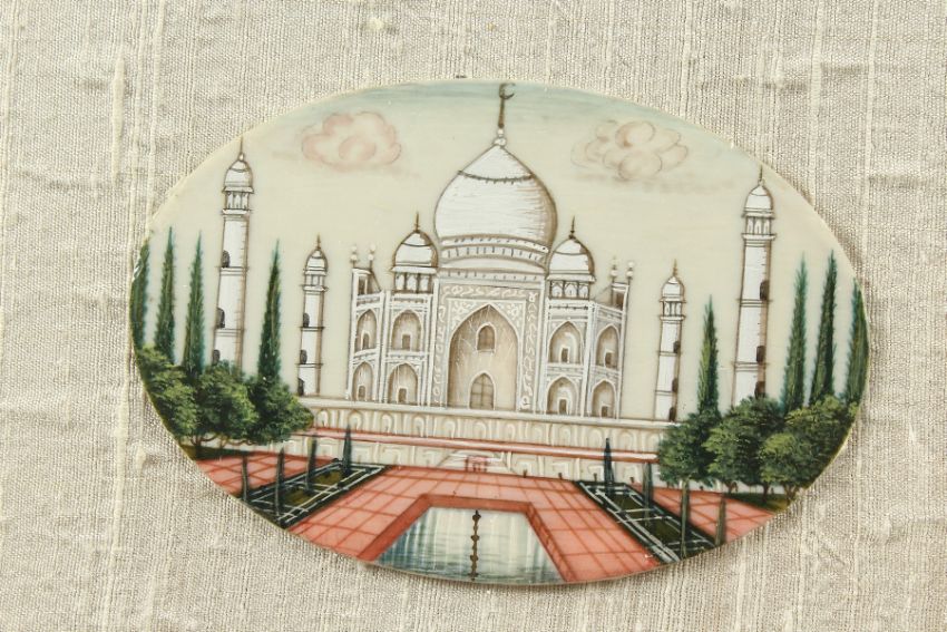 A FRAMED INDIAN OVAL, Taj Mahal, on ivory.