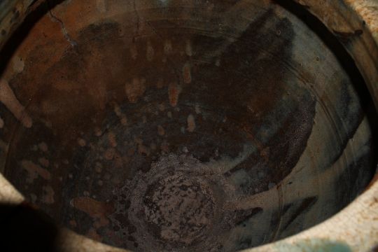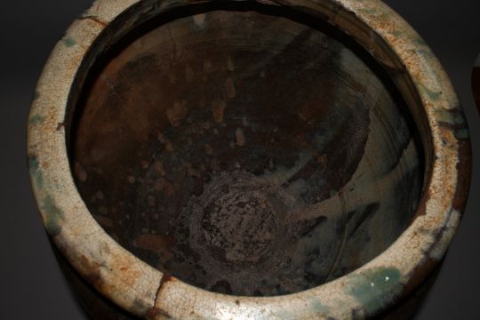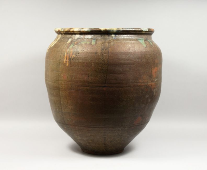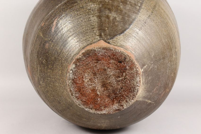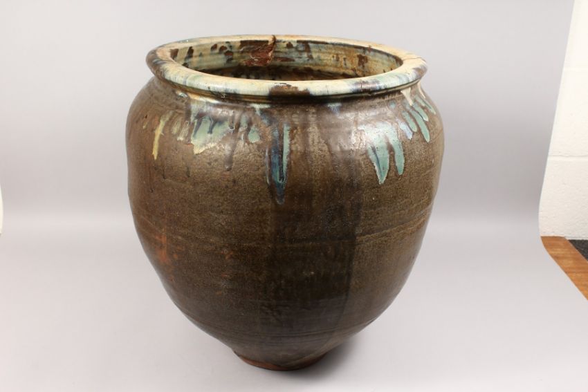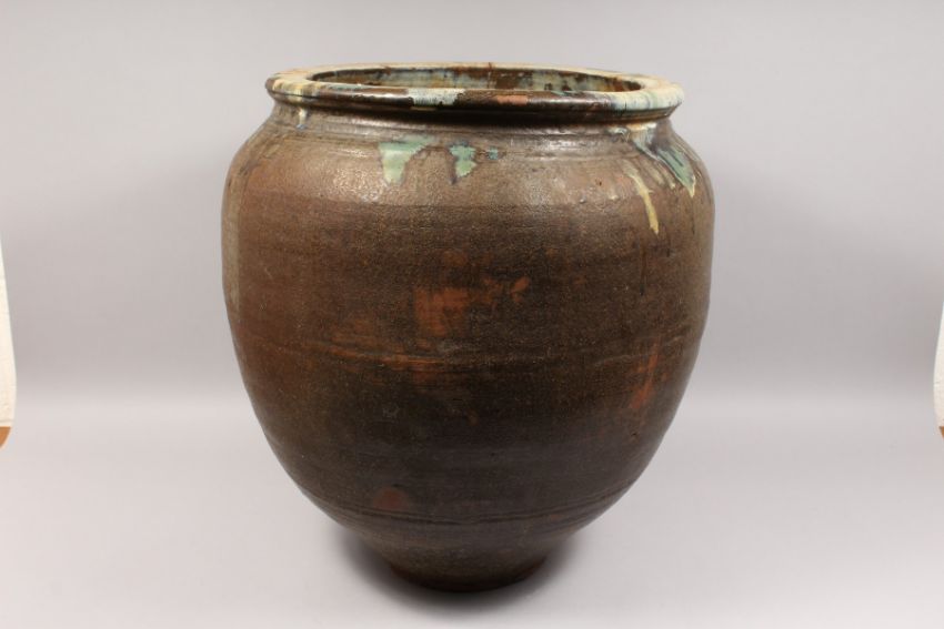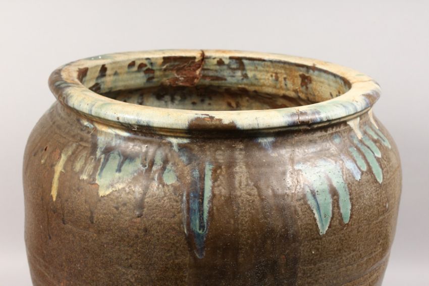 A LARGE HIGH FIRED ORIENTAL POTTERY JAR.
