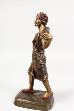 A GOOD BRONZE OF AN ARAB, carrying a stick across his back.