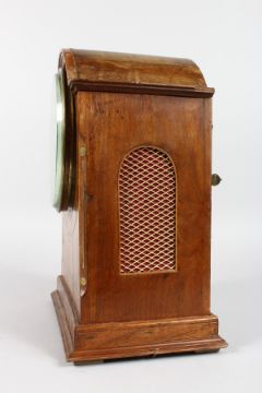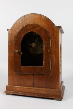 A 19TH CENTURY MAHOGANY BRASS INLAID CASED MANTLE CLOCK by BENNETT, LONDON, the face with a lapis circle on a black background with gilt Roman numerals.