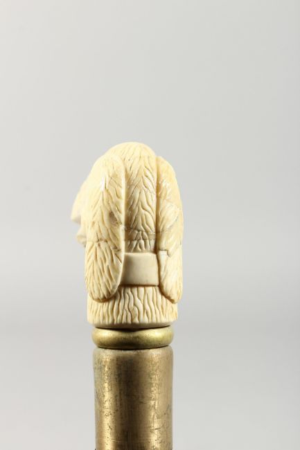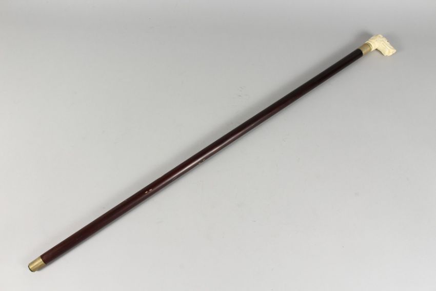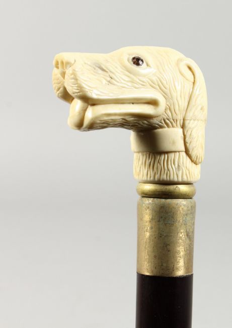 A WALKING STICK the bone handle carved as a dog's head.